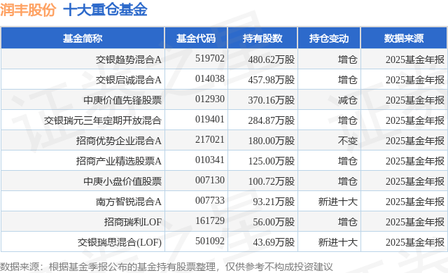 根据2025基金年报公募基金重仓股数据,重仓该股的公募基金共25家,其中持有数量最多的公募基金为交银施罗德基金的交银趋势混合A。交银趋势混合A目前规模为32.14亿元,最新净值5.392(4月3日),较上一交易日下跌0.84%,近一年上涨27.2%。该公募基金现任基金经理为杨金金。杨金金在任的基金产品包括:交银启诚混合A,管理时间为2021年12月8日至今,期间收益率为46.75%;交银瑞元三年定期开放混合,管理时间为2023年10月27日至今,期间收益率为42.78%。